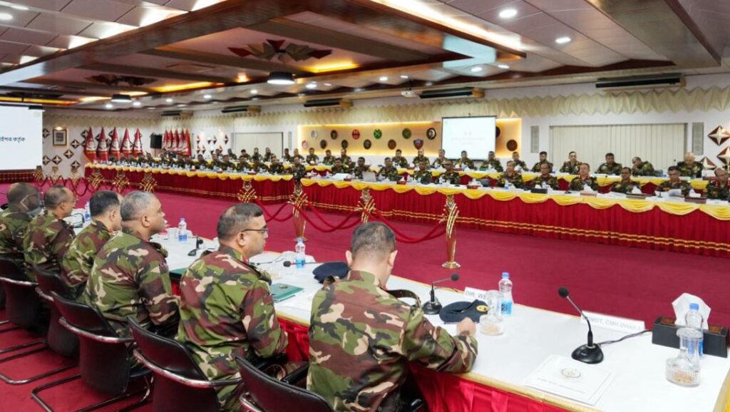 চট্টগ্রাম সেনানিবাসস্থ দি ইস্ট বেঙ্গল রেজিমেন্টাল সেন্টারে (ইবিআরসি) আজ অনুষ্ঠিত হয়েছে ইস্ট বেঙ্গল রেজিমেন্টের ৩৮তম বাৎসরিক অধিনায়ক সম্মেলন–২০২৫। সম্মেলনে প্রধান অতিথি হিসেবে উপস্থিত ছিলেন সেনাবাহিনী প্রধান জেনারেল ওয়াকার-উজ-জামান, এসবিপি, ওএসপি, এসজিপি, পিএসসি।